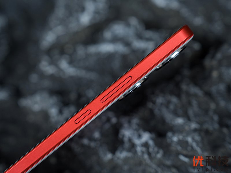 机身右侧中框自上至下分别为一体式音量控制键和电源键,并且按键边缘还有着倒角设计,非常的精致,同时按键的手感反馈也是非常的不错,清脆有力,细节做工方面蓝厂还是值得相信的。