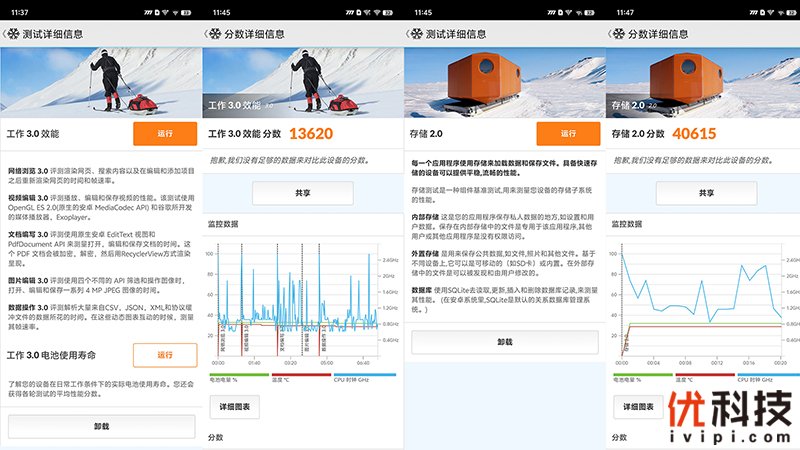 关于PCMark测试:PCMark是以整机综合性能为考量的测试软件,可精准反映手机日常使用的处理性能,多个日常测试场景,例如网页浏览、视频编辑、文档编写、图片编辑等等,并可以进行电池续航测试。