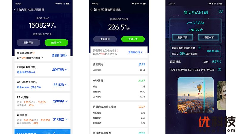 下面就到了每次体验必不可少的跑分环节了,虽然跑分并不能反映一款手机的真实体验表现,但是也可以给用户一定的参考。下面笔者就用目前市面上比较流行的几款跑分软件对iQOO Neo9进行测试。