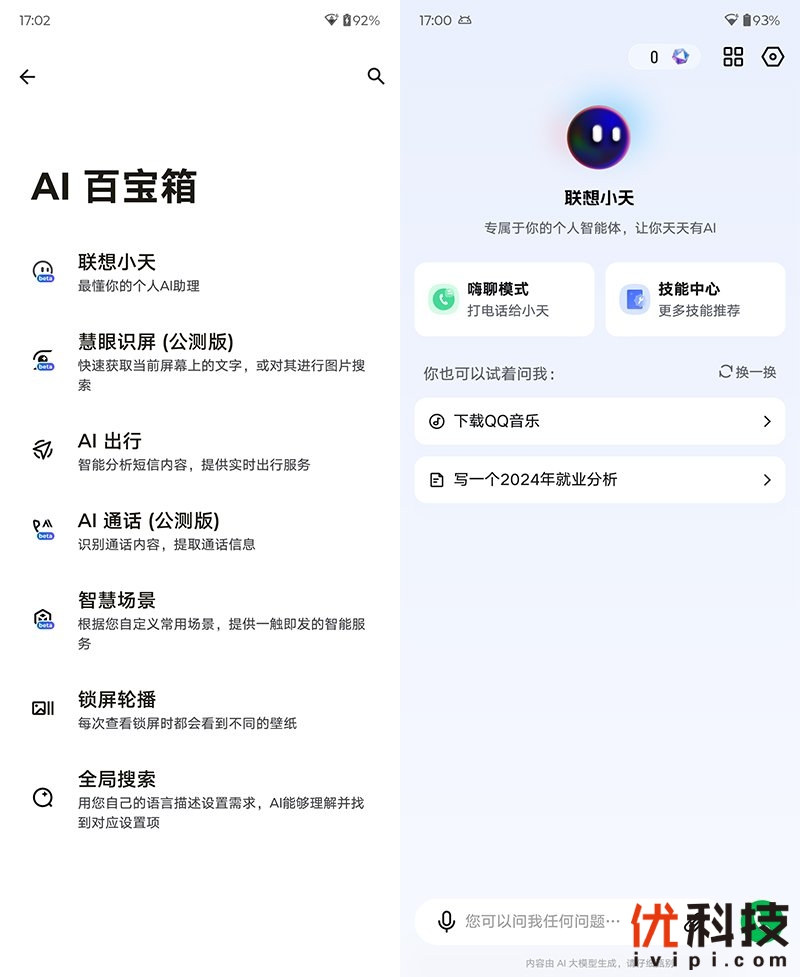随着现如今AI功能的日益强大,在全新的myui 7.0中也是内置了AI助手联想小天,在系统内的AI百宝箱中可以和联想小天进行多种互动。同时在AI百宝箱中还集成了AI出行、智慧场景等等全新智能服务。