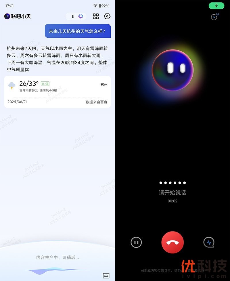 经过近段时间的体验,联想小天的应变以及支持都是非常不错的,可以很有效地执行用户的意图,其中嗨聊模式则是非常的有趣,采用了模拟通话状态与联想小天进行交流,另外我们还可以克隆声音,这样AI的声音就可以变成自己、家人或者朋友的音色,大大降低了大家对于AI的抗拒程度。