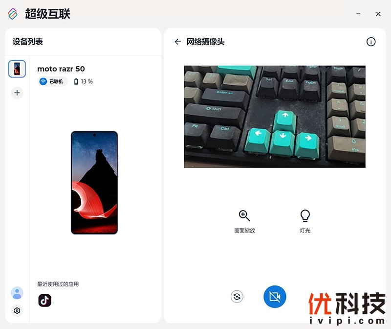同时moto razr 50还可以作为电脑摄像头来使用,并且支持画面缩放以及闪光灯补光,同时支持镜头切换,实用性非常高。