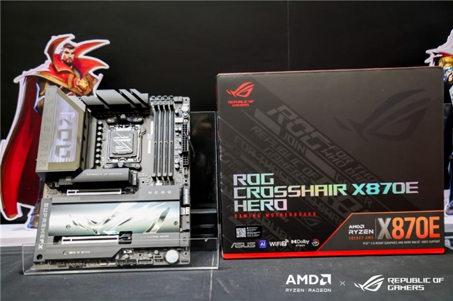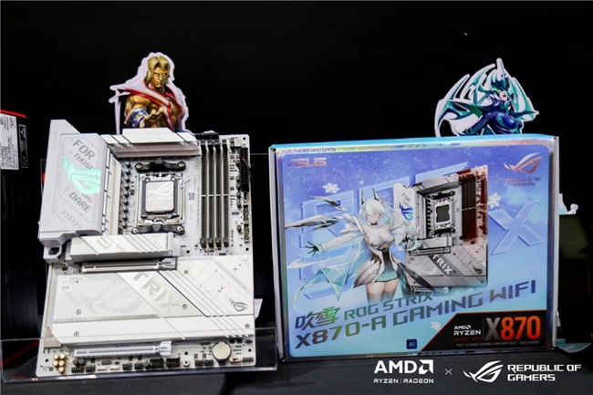 针对AMD锐龙9000系列处理器,华硕特别量身打造了X870E、X870系列主板。这次核聚变上也特别展示了信仰利器ROG CROSSHAIR X870E HERO主板,和颜之正义的华硕X870吹雪主板(ROG STRIX X870-A GAMING),更强的性能、更快的互联、更多的黑科技和更高的颜值,成为现场打卡胜地!