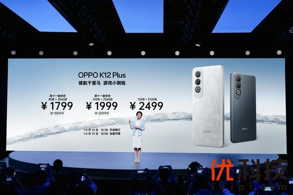 OPPO K12 Plus 将于 10 月 12 日15:30开启预订,10 月 15 日10:00正式全面开售,双十一到手价1799元起。