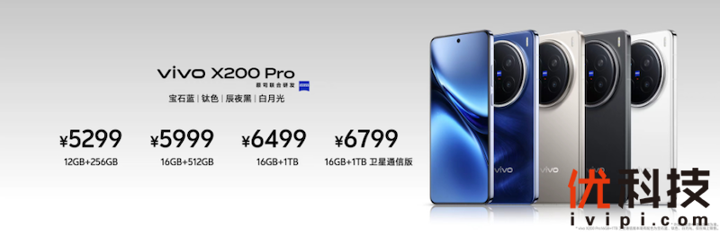 vivo X200系列三款新品价格在此次发布会上公布,其中vivo X200有12GB+256GB、12GB+512GB、16GB+512GB、16GB+1TB版本,售价分别为4299元、4699元、4999元、5499元;vivo X200 Pro有12GB+256GB、16GB+512GB、16GB+1TB、16GB+1TB(卫星通信版)版本,售价分别为5299元、5999元、6499元、6799元;vivo X200 Pro mini有12GB+256GB、16GB+512GB、16GB+1TB版本,售价分别为4699元、5299元、5799元。