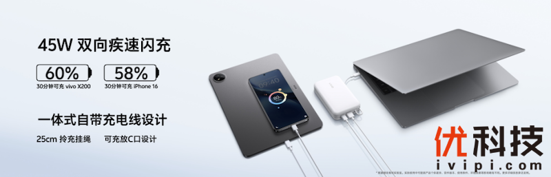 2024年10月14日,vivo X200系列新品发布会上,vivo WATCH GT、vivo Pad3系列带来大量更便捷、更智能的功能更新,愿以焕新之姿和诚意价格,成为用户不可或缺的智慧好伙伴。同时带来了全新配色的vivo TWS 3i,以及vivo 45W、22.5W自带线充电宝,首销期间购买更有额外优惠。