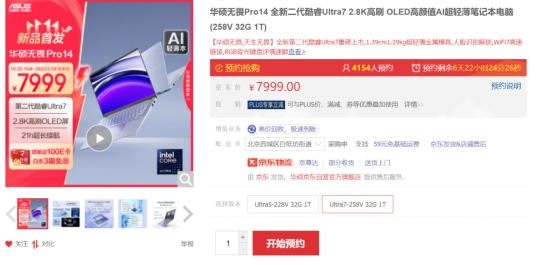 新一代华硕无畏Pro14 2024在京东开启预约,采用1.39cm超轻薄金属机身,可选第二代英特尔酷睿Ultra7处理器、2.8K 120Hz OLED华硕好屏、32GB 8533MHz超高频内存,AI算力与续航时间大幅提升,首发7999元。