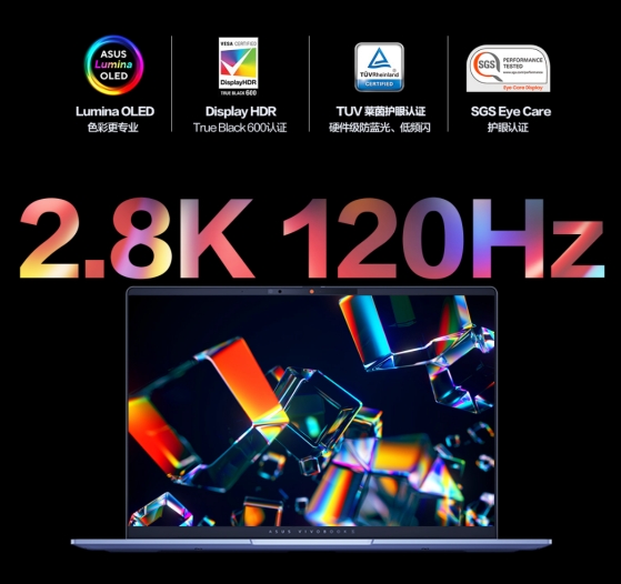 配备2.8K 120Hz OLED华硕好屏,展现无畏真实本色。覆盖100% P3广色域,支持四种专业色域切换,峰值亮度高达600尼特,对比度高达100万:1,可显示10亿色彩,出厂经过逐台校色△E<1,无论是日常办公、游戏娱乐还是专业剪辑、设计,都能让你感受到绝佳的视觉体验。
