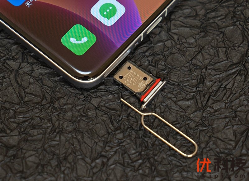 真我 GT7 Pro的卡托采用了金属+塑料材质设计,内部支持双nano卡上下放置,并且标有SIM卡安装指示和防尘防水的红色胶圈,细节设计还是不错的。