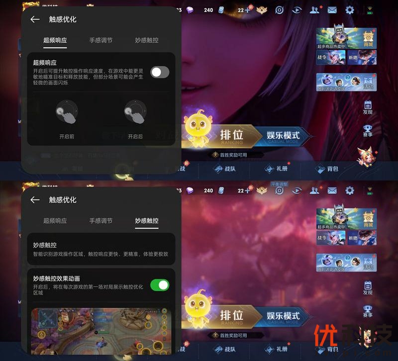 系统还内置了2600Hz妙感触控引擎,触控响应时间瞬间提升至 0.3ms,与《王者荣耀》《和平精英》联合优化触控,全面提升游戏体验。