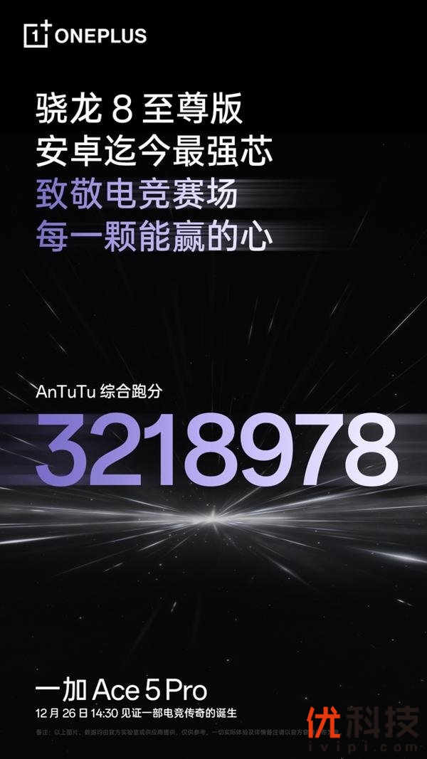 12月19日,一加官方宣布一加 Ace 5 系列正式定档 12 月 26 日,一加 Ace 5系列搭载骁龙旗舰平台和众多行业领先硬件配置,搭配行业首款芯片级游戏技术「风驰游戏内核」,以凶猛性能打造满级战力,性能表现断档领先。同时,一加官宣传奇电竞选手Uzi作为 Ace 系列首席电竞官,共同见证一部电竞传奇的诞生 。