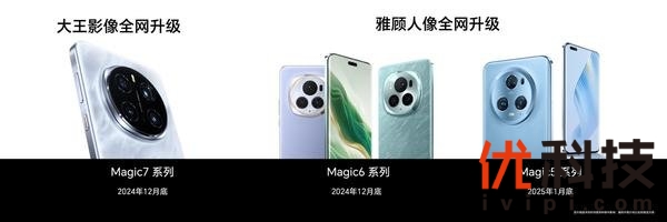 发布会最后,荣耀宣布“大王影像”将于12月底在Magic7系列上全网升级;广受好评的雅顾人像功能,也将会在2024年12月底和2025年1月底,依次在Magic6系列和Magic5系列上全网升级,普惠更多Magic系列老款机型,让更多用户体验到荣耀影像提升的优异成果。