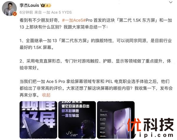 继承一加好屏基因,一加 Ace 5 系列首发搭载 1.5K 第二代东方屏