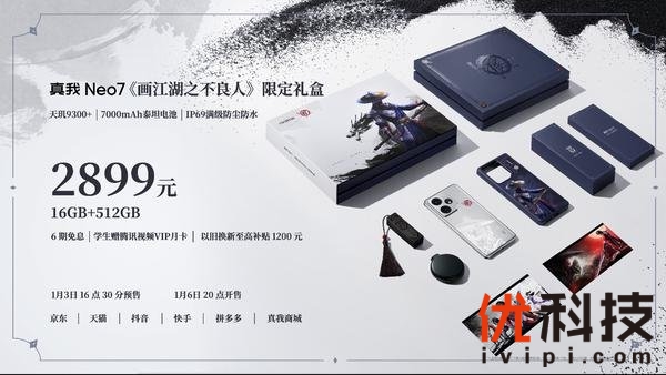 真我Neo7《画江湖之不良人》限定版礼盒已于1月3日16:30预售,售价2899元,是广大不良人粉丝不可错过的国漫典藏级定制。