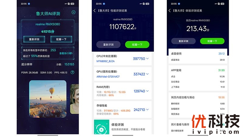 下面就到了每次体验必不可少的跑分环节了,虽然跑分并不能反映一款手机的真实体验表现,但是也可以给用户一定的参考。下面笔者就用目前市面上比较流行的几款跑分软件对真我Neo7 SE进行测试。
