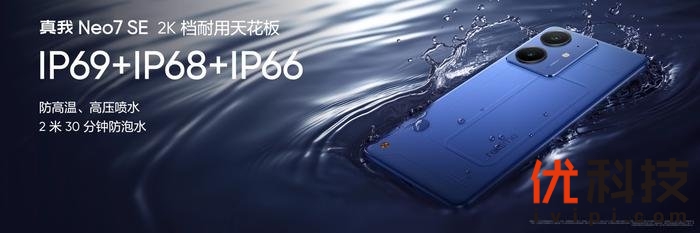 真我Neo7 SE不计成本提升品质,达到IP69+IP68+IP66满级防水标准,可防高温、高压喷水,至高可实现2米+30分钟的防泡水,全面降低意外浸泡、意外淋溅等极限场景的品质风险。其他方面,真我Neo7 SE配备铠装防摔架构,升级了机身四角的强化设计、内部缓冲材料填充以及手机主板上的高强度金属,更大程度提升了整机的抗造性。
