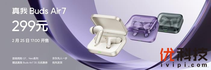 真我Buds Air7 起售价299元,参与京东先人一步更可享抢先发货。首销周购买GT、Neo系列产品,还可获赠30元真我 Buds Air7优惠券,到手价低至269元。