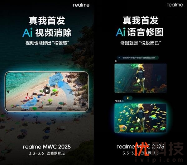 作为行业里率先落地AIGC技术的手机品牌,真我将在MWC展会上发布AI视频消除、AI语音消除两项黑科技,定义AI影像新未来。