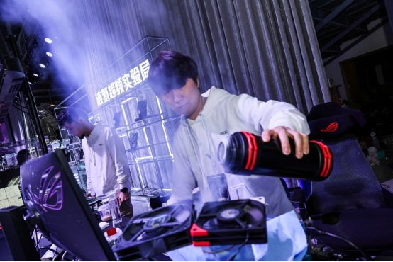 实验室核心区,由各种高性能装备为核心组建的量子计算中心,显然是ROG LAB灵感实验室给玩家们准备的科技盛宴豪华首秀。除了液氮超频实验局外,还有特效全开竞技场搭载新一代华硕AMD/Intel 800系列主板和高性能RTX 50系显卡,让玩家尽情享受各种游戏特效拉满的视觉冲击。