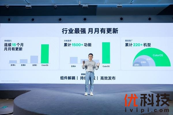 满血 ColorOS 15 系统全面进化,背后是系统更新升级的规模化敏捷工程,即组件解耦、持续集成和高效发布。凭借这三套组合拳,ColorOS 月月有更新做到行业持续最久,功能推出数量与用户覆盖规模均居行业绝对领先。去年 1 月至今,ColorOS 连续 15 个月月更,累计推出 1500+ 项功能更新,覆盖 2 亿+ 用户、220+ 款机型。与此同时,AI 能力进入“半月更”节奏持续升级,让用户最快用上最想要的功能。依托强大的月更体系,满血 ColorOS 15 系统春季升级计划也将稳步推进,让好用的功能更快触达更多用户。
