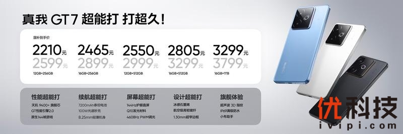 凭借3nm旗舰芯天玑9400+、7200mAh+100W续航组合,真我GT7成为名副其实的“性能续航双冠王”,其具体售价如下: