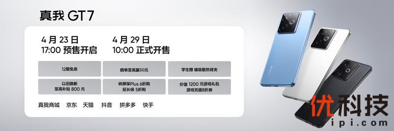 真我GT7现已正式开启预售,4月29日10点全渠道现货开售,价保618。购机可享至高12期免息分期,换新补贴最高800元,老用户以旧换新至高享200元额外补贴。