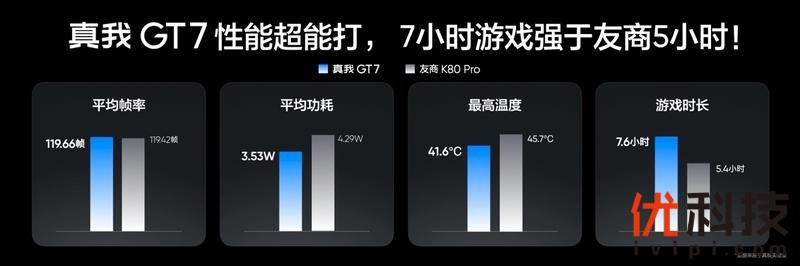为充分发挥3nm旗舰芯的潜能,真我GT7升级全新GT性能引擎2.0,首发芯片级内核技术,每帧画面渲染负载至高降低30%,有效提升游戏能效与温控表现。《王者荣耀》120fps+极致画质,满电玩到关机超过7个小时,帧率、能效、温控均比其它3nm性能旗舰5小时的表现更出色。