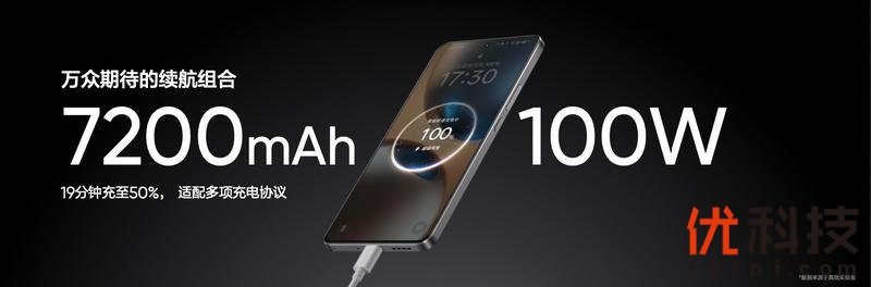 续航超能打:行业唯一7200mAh +100W组合,203g轻薄长续航