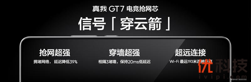 稳定的游戏体验离不开稳定的网络。真我GT7首发电竞抢网芯,大幅提升Wi-Fi的上下行,实现超强抢网、超强穿墙、超远连接效果,堪称「信号穿云箭」。针对信号死角场景,真我GT7首发AI信号追踪技术,可自动调节天线信号方向捕捉强信号,弱信号场景下游戏时延降低12%。
