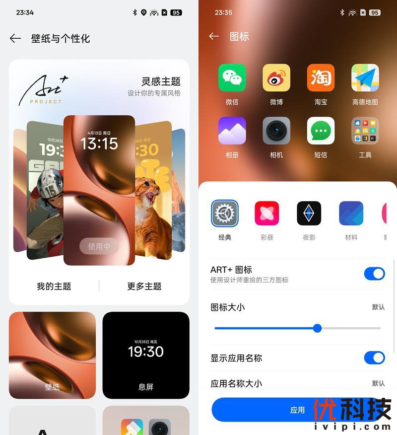 在UI细节方面用户的自由度也是非常高,用户可以在系统内的壁纸与个性化选项中自由设定壁纸、字体、图标等细节设置,其中ART+图标还是建议开启的,打造更具乐趣的视觉体验。