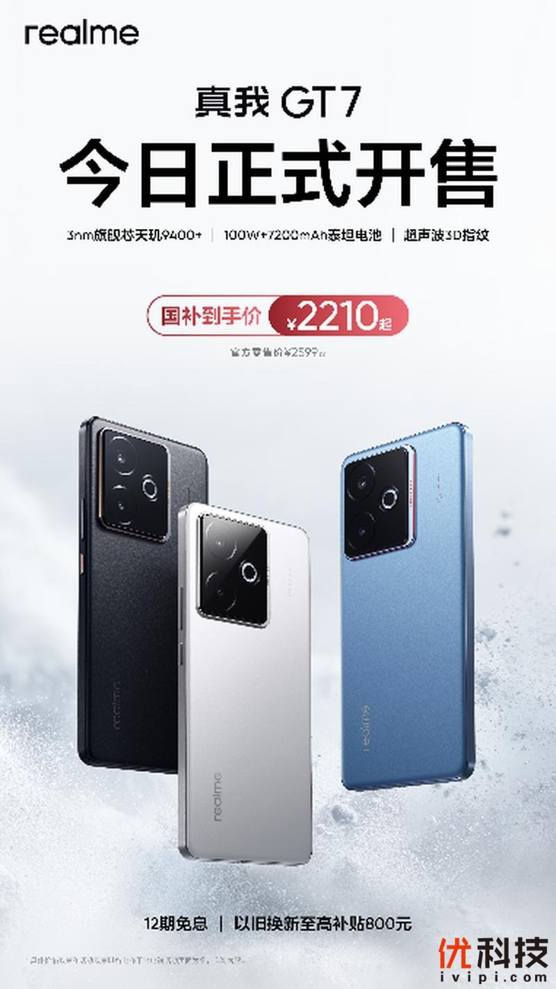 - 真我GT7今日正式开售,国补到手价2210元起