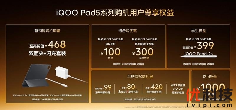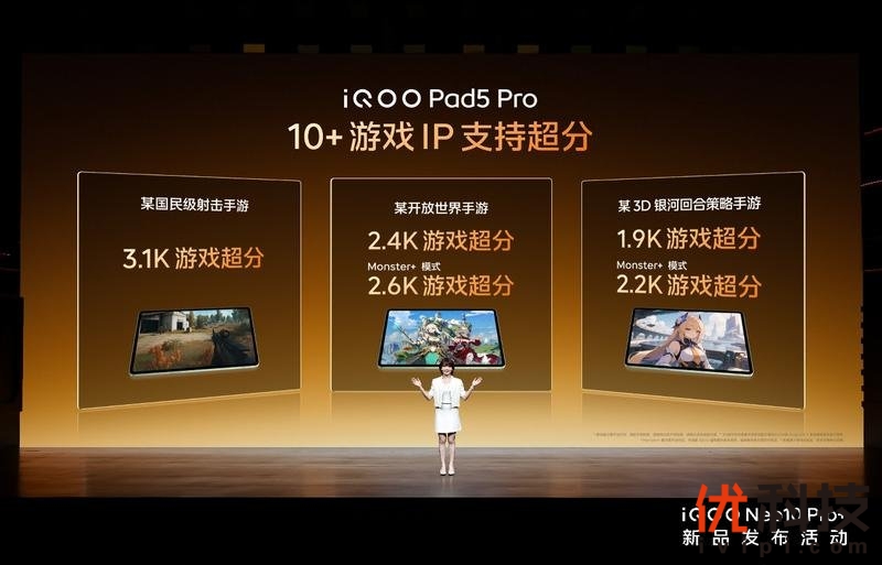 “永劫无间手游官方推荐平板”、“王者荣耀职业联赛官方推荐平板”iQOO Pad5 系列同台登场,系列共有 13 英寸 的 iQOO Pad5 Pro 和 12.1 英寸的 iQOO Pad5 两款产品。