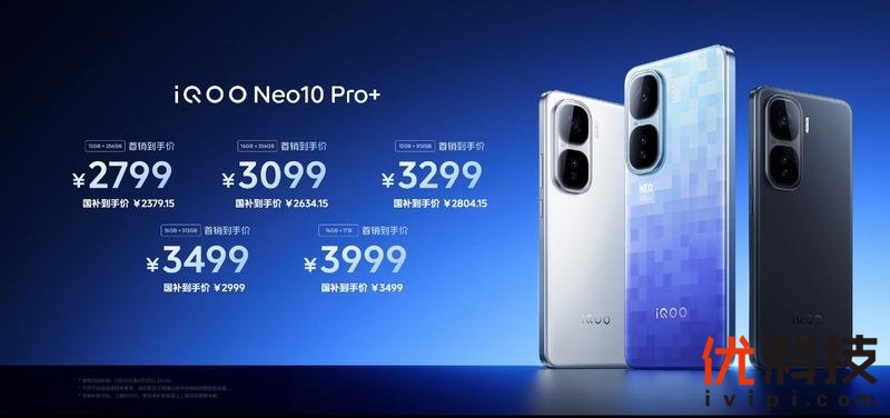 iQOO Neo10 Pro+ 共有“超级像素”、“驰光白”和“疾影黑”三种配色可选,提供 12GB+256GB、12GB+512GB、16GB+256GB、16GB+512GB 和 16GB+1TB 五种存储组合可选,到手价 2799 元起。