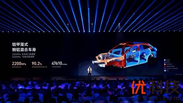 整车安全方面,YU7搭载了全新升级的铠甲笼式钢铝混合车身,全球首发「2200MPa小米超强钢」并应用于全车四门防撞梁,同时在A柱、B柱使用了6根热气胀管,与车身结构配合形成内嵌式防滚架。YU7还带来全球最严苛的电池安全标准、远超新国标,以及50项+被动安全性能开发测试、全系标配20项主动安全配置。