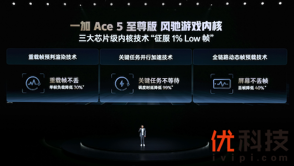 为解决"平均帧率接近满帧但游戏仍卡顿"的手游体验痛点,一加将PC级游戏评测标准1% Low帧纳入手机游戏体验的衡量标准中。1% Low 帧指的是把一段游戏的帧数从高到低排序,取到最低的 1% 帧的帧率平均值。虽然 1% Low 帧出现的时间很短,但它往往出现在团战激烈时刻、钢枪对决瞬间、Boss 战等游戏关键时刻,对于整局游戏的流畅体验至关重要。1%Low帧是最能反映游戏真实流畅度的帧率指标,所以真正的流畅游戏体验,既要看「平均帧率」,更要看「 1% Low 帧」。一加Ace 5 至尊版在平均帧率满帧之上,得益于三大芯片内核技术,继续征服1%Low帧,挑战消灭游戏卡顿的最后一公里。在《王者荣耀》10v10 龙坑团战、《星铁》大规模地图奔跑测试和《原神》血战 Boss 等重载游戏场景中,一加Ace 5 至尊版1%Low帧表现均可挑战行业最强。行业内只有一加Ace 5 至尊版才能同时做到平均帧率行业最高,1%Low帧行业最优。