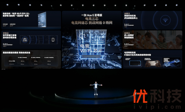 一加 Ace 5 至尊版行业首发独家自研「电竞 Wi-Fi 芯片 G1」,挑战行业最强Wi-Fi性能,堪称 Wi-Fi 信号「穿墙王」。G1芯片内含功率放大器与低噪声放大器,射频功率显著提升,通过防丢包、抗干扰等技术,全场景解决 Wi-Fi 覆盖痛点。当多台手机连接同一 Wi-Fi 时,一加 Ace 5 至尊版的连接距离、网络速率以及穿墙性能分别比其他手机提升 11%、26%和33%。尤其在宿舍这类多人共享同一网络,信号干扰大、网络拥堵的场景中,优势尽显。一加 Ace 5 至尊版还采用 11根天线环绕式分布的电竞天线系统,搭载四根黄金游戏天线,针对游戏横握场景优化信号遮挡问题。同时支持「对战流加速」、「AI 弱网增强」、「游戏云计算专网」等技术,并配备 Wi-Fi 7、5.5G 等旗舰通信能力,无论是弱网、穿墙还是复杂网络环境,全方位无死角打造最强电竞网络。