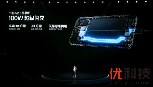 一加 Ace 5 至尊版还配备 100W 超级闪充,仅需充电 10 分钟,即可畅享满帧游戏 3 小时;39分钟就能充至100%电量,回血迅速,告别电量焦虑。同时,一加 Ace 5 至尊版支持旁路供电功能,电源直充手机,有效减少电池充放电次数,延长电池寿命,并显著缓解游戏时的机身发热情况。