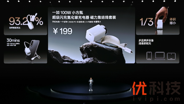 配件方面,一加 100W 小方瓶超级闪充氮化镓充电器磁力集结线套装售价 199 元,这款充电器不仅支持 100W 超级闪充,更具备 65W PD 长期功率输出,小巧精致,能够满足手机和电脑等设备的充电需求。
