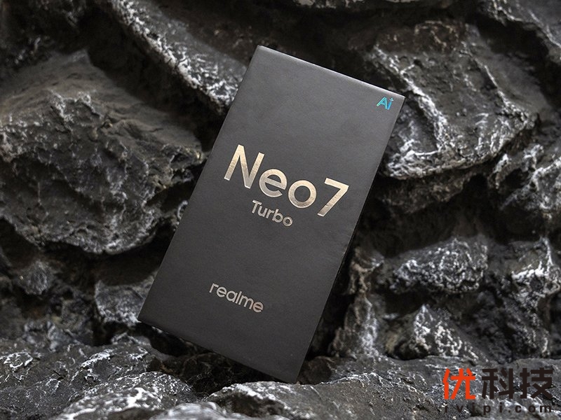 包装设计方面依旧延续了真我经典的纯黑色配色,正面中心部分印有烫银色Neo7 Turbo产品标识,底部则是realme标识,而右上角则是炫蓝色的AI标志。