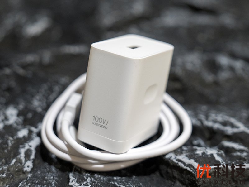 包装内附送了充电线以及100W的SUPERVOOC闪充电源适配器。充电线的做工还是不错的,较为粗实,耐用性应该会有不错的表现,而电源适配器还是熟悉的味道,两侧有着一定的内凹设计,便于日常使用的插拔。