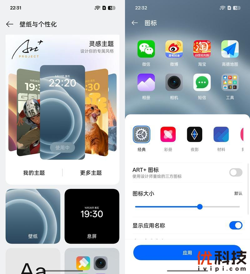 在UI细节方面用户的自由度也是非常高,用户可以在系统内的壁纸与个性化选项中自由设定壁纸、字体、图标等细节设置,自由度非常高,用户可以打造一款独一无二的主体壁纸组合。