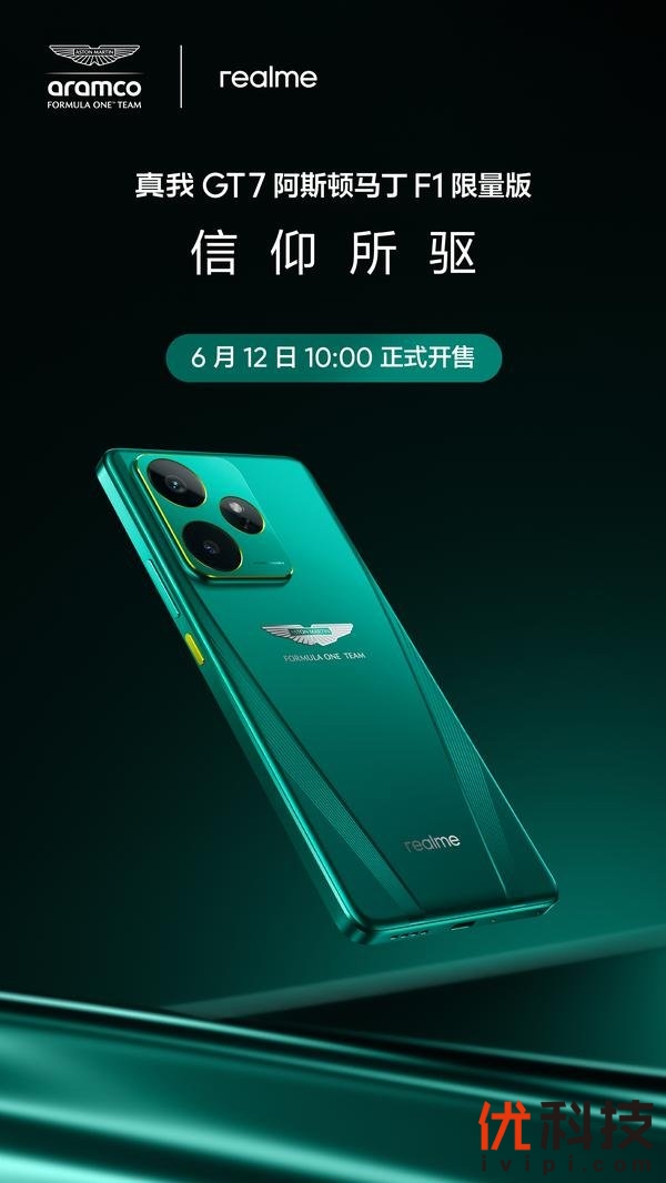 2025年6月9日—中国 · 深圳—真我官方宣布真我GT7阿斯顿马丁F1限量版将于6月12日10:00正式开售。秉承阿斯顿·马丁沙特阿美F1®车队对极致的执着、不灭的激情与卓越的追求,真我与之携手将梦想之作化为现实,实现年轻人对梦想产品的极致追求。