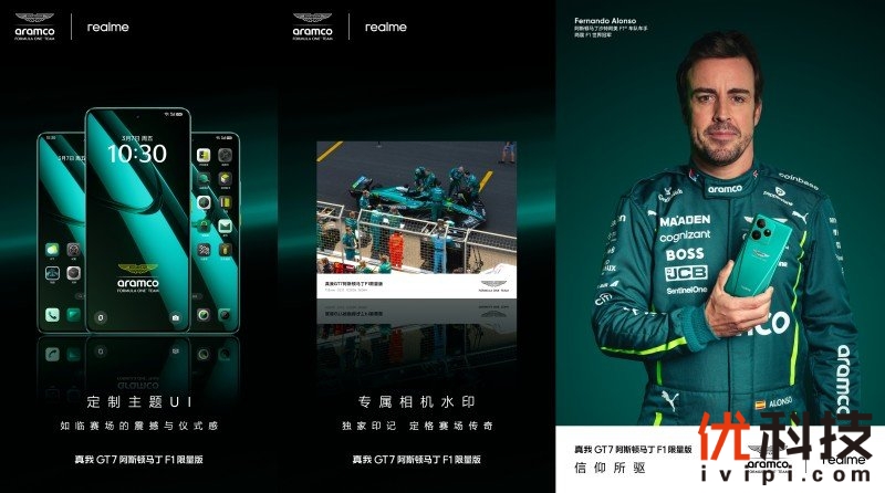 另外,真我GT7阿斯顿马丁F1限量版还将赛道精神注入到UI设计中,开机动画、动态壁纸、充电动效、GT模式动效等全方位深度定制UI主题,带来如临赛场的震撼感!全新打造的阿斯顿·马丁沙特阿美F1®车队高定相机水印,也只为定格传奇瞬间,让每一拍都彰显专属身份感。真我GT7阿斯顿马丁F1限量版也将携手双届F1世界冠军费尔南多·阿隆索、天才车手兰斯·斯特罗尔等阿斯顿·马丁沙特阿美F1®车队车手共赴下一程,一同见证传奇征程与赛道荣耀。