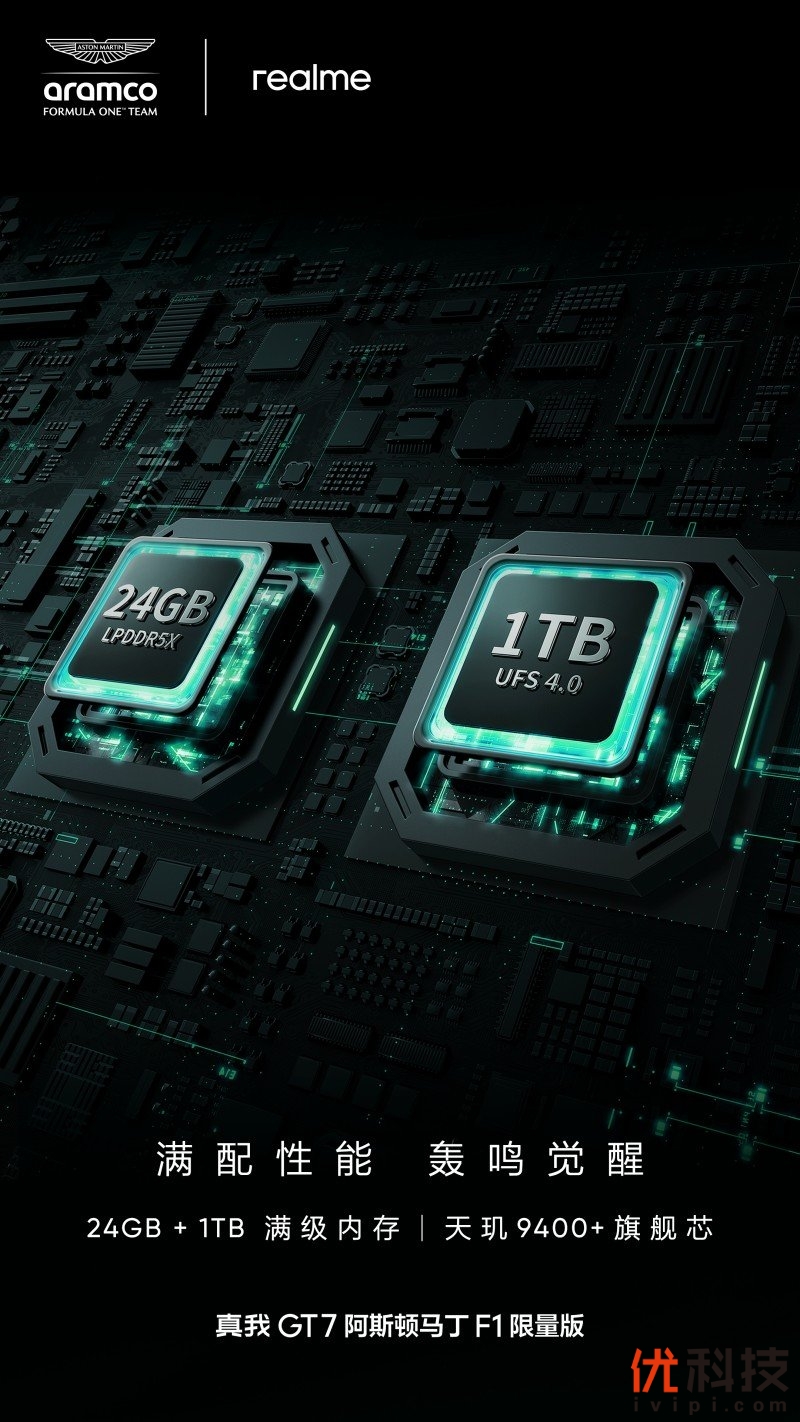 在设计、性能、工艺都经历无数次蜕变后,真我GT7阿斯顿马丁F1限量版脱颖而出,并以24GB+1TB满级大内存,最新3nm天玑9400+旗舰芯、7200mAh+100W顶级续航组合等满配性能,满足性能玩家的极致需求。