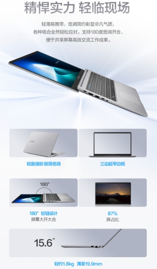 频繁出差、临时外出开会、咖啡厅灵感碰撞……现代职场人的工作场景日益多元,设备便携性成为刚需。华硕破晓6 锐龙版采用15.6英寸窄边框屏幕,在保证大屏视野的同时,将机身重量控制在1.8kg,厚度仅约19.9mm,方便用户轻松收纳进通勤包或手提袋中,单手握持亦无压力。