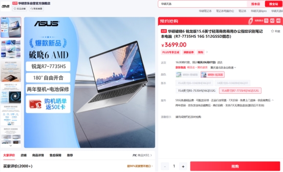 - 商务轻选,全能出挑,15.6寸华硕破晓6 锐龙版上架开售!