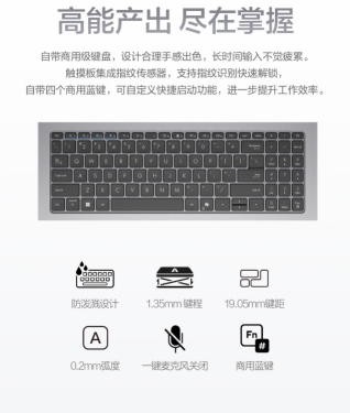 华硕破晓6锐龙版,机身支持180°开合角度,无论是与客户面对面分享方案,还是在狭小机舱桌板上调整屏幕角度,都能找到最舒适的观看姿态。自当商务级键盘,设计合理触感出色,即便实在高铁车厢,咖啡厅等移动办公场景下,依旧可以精准触达,高效产出;自带四个商用蓝键,可自定义快捷启动功能,进一步提升用户的办公效率。