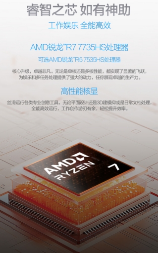 对于商务人士而言,电脑性能直接决定了工作流的顺畅度。华硕破晓6锐龙版搭载AMD锐龙7 7735HS处理器,其基于“Zen 3+”架构打造,拥有8核心16线程,单核MAX主频达4.75GHz,可轻松应对多任务处理、数据分析等专业需求;另集成AMD RadeonTM 680M高性能核显,无论是平面设计还是轻度视频剪辑,都能提供流畅体验。
