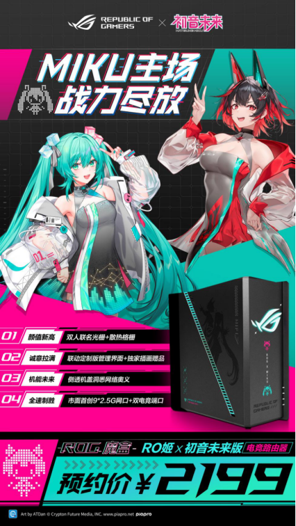 「ROG魔盒 RO姬x初音未来版电竞路由器」的推出,不仅是对二次元文化的一次深情致敬,更是ROG“以玩家为核心”品牌理念的深刻体现。通过深度定制的设计理念与强大硬件配置的结合,该路由器成功满足了玩家们对二次元文化的喜爱和对电竞性能的双重追求。