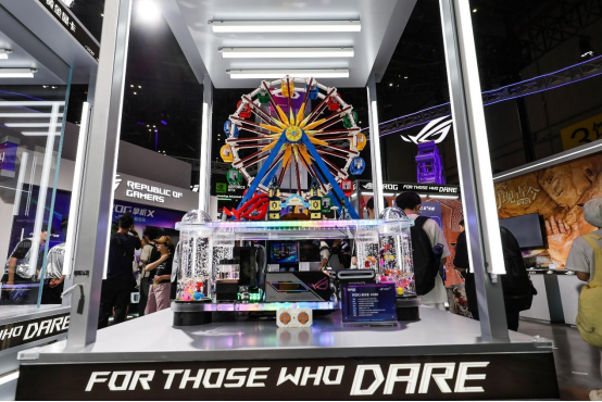ROG个性MOD以特别设计彰显电竞魅力,ROG玩+乐园展示了琳琅满目的ROG MOD作品。包括ROG创世神黄金全家桶MOD主机,由Bro兄弟水冷创作的ROG摩天轮MOD主机,由FUXK创作的ROG跑车MOD主机,由Xikii厂长创作的FF07 MOD主机等,每一件MOD作品都如艺术品般引人注目,将科技与电竞文化融入生活,展现无限可能。